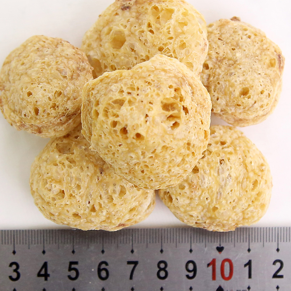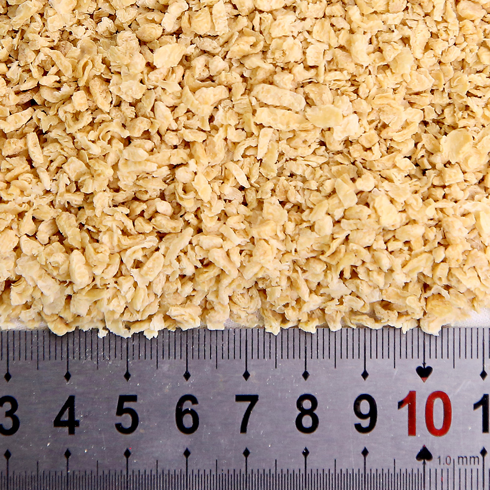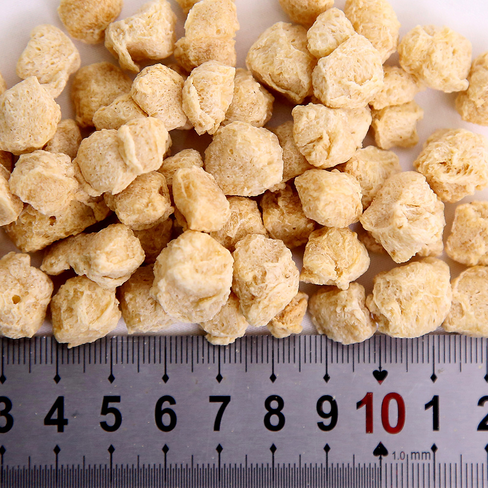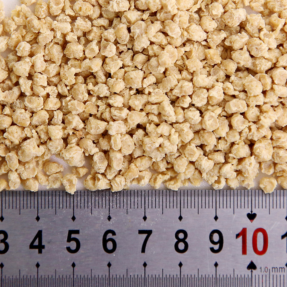 该产品是将分离蛋白、大豆浓缩蛋白、低温豆粕、谷朊粉、淀粉依产品配方比例经挤压膨化、高温高压处理而成,具有良好的吸水性、保油性和类似肉的纤维结构,富有咀嚼感,是一种理想的高蛋白肉制品添加物、休闲豆制品的辅料。产品类型包括TW系列、TB系列